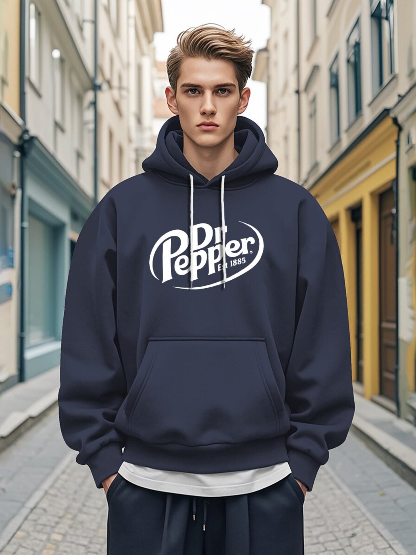 1pc Dr Pepper Print Men'S Casual Hoodie - Cozy Long Sleeve Pullover with Hood, Polyester Fabric, Regular Fit, Stretchy, for Autumn/Winter