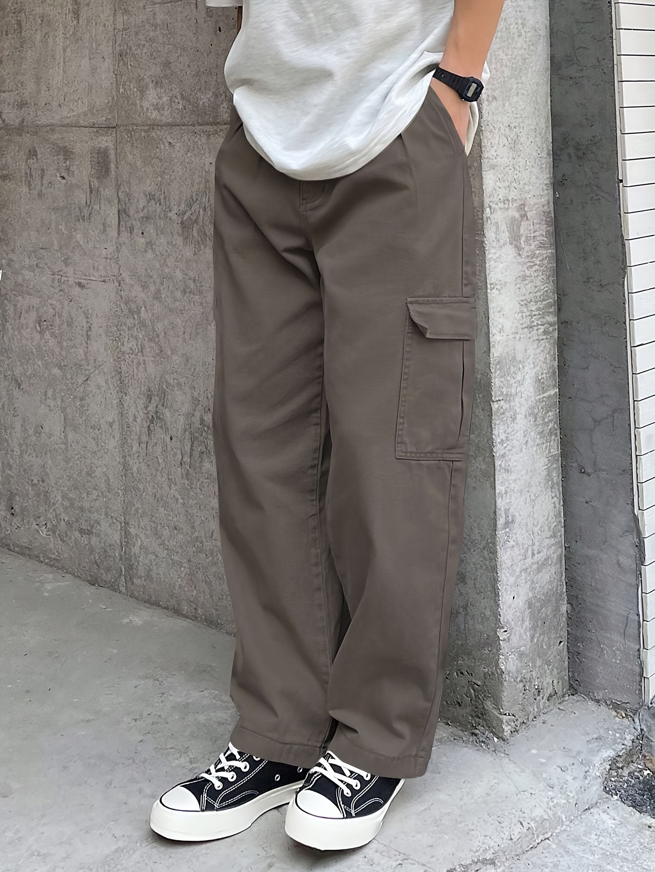 1pc Men'S Casual Denim Cargo Pants, Solid Color, Non-Stretch, Regular Length, Suitable for All Seasons, with Pockets, Woven Fabric, Slim Fit