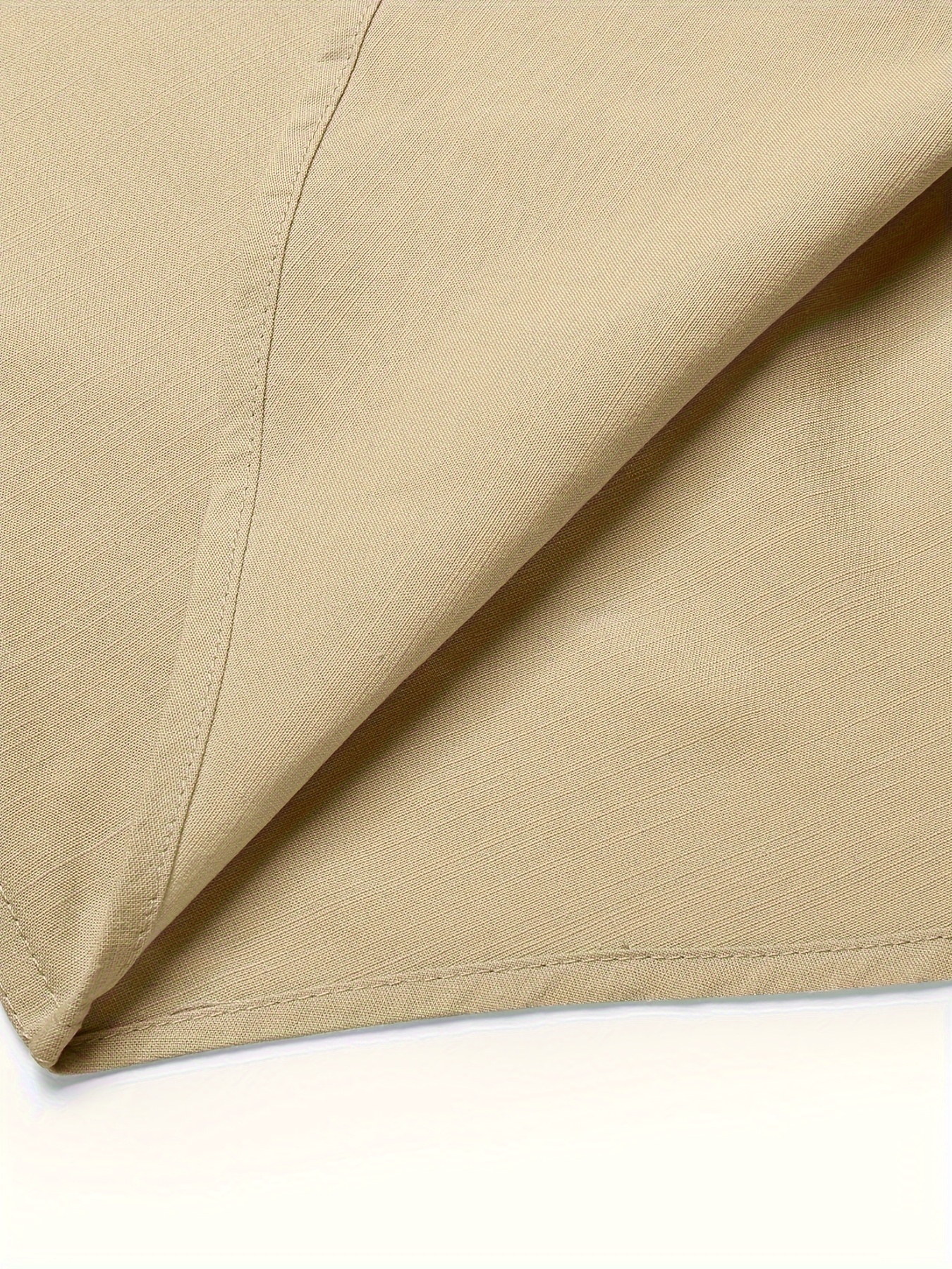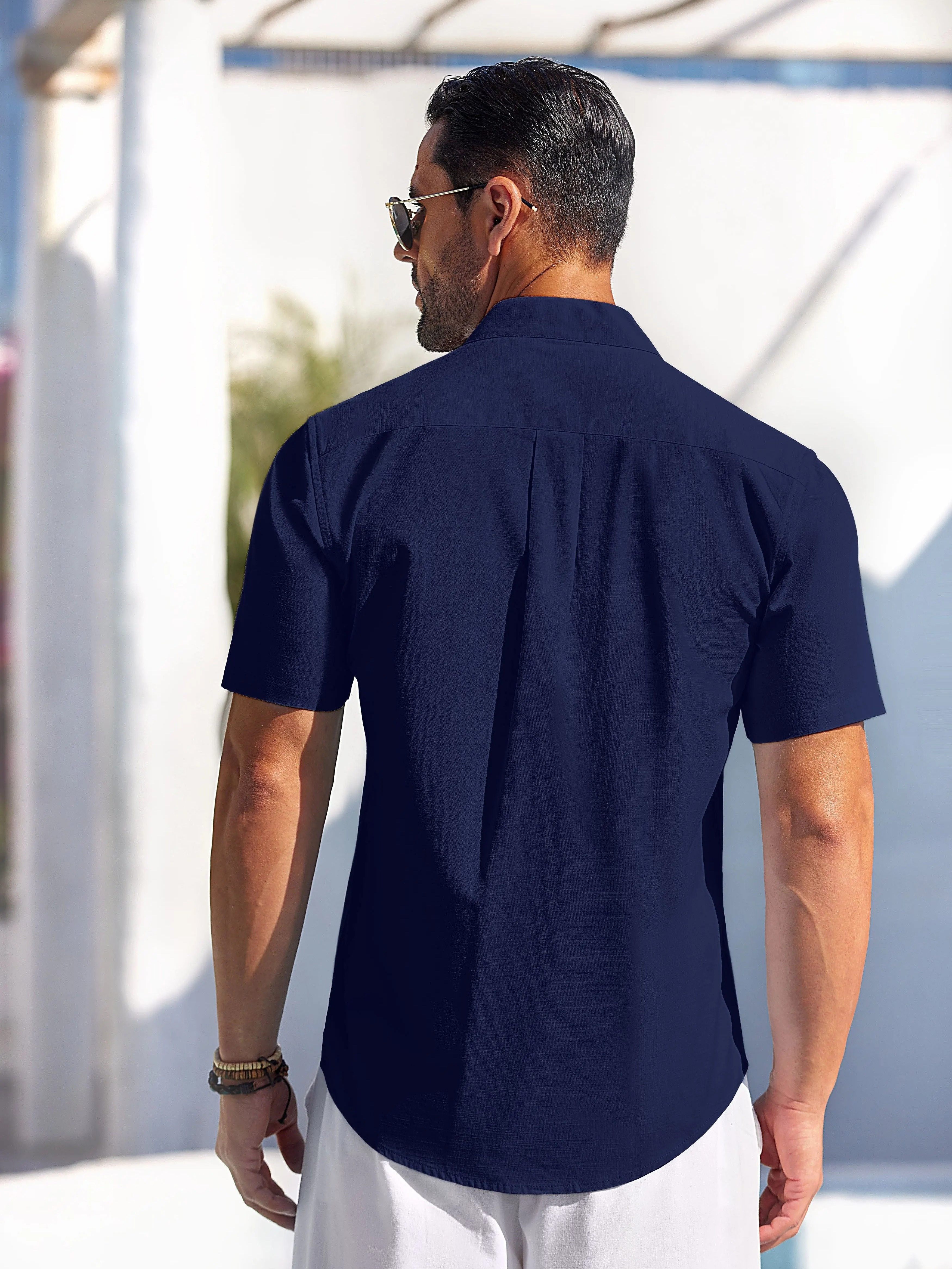 Men's Casual Button Down Cotton Shirts Short Sleeve Band Collar Beach Summer Shirt Tops