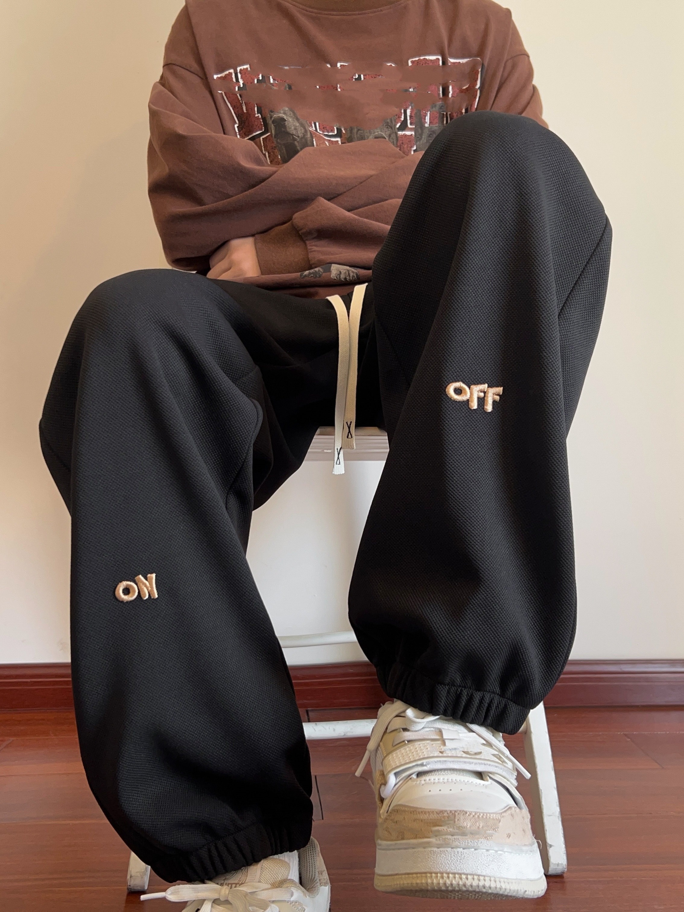 Men's Casual Joggers with Embroidered Design - Comfy Drawstring Sweatpants for Spring & Fall, Versatile Loose Fit