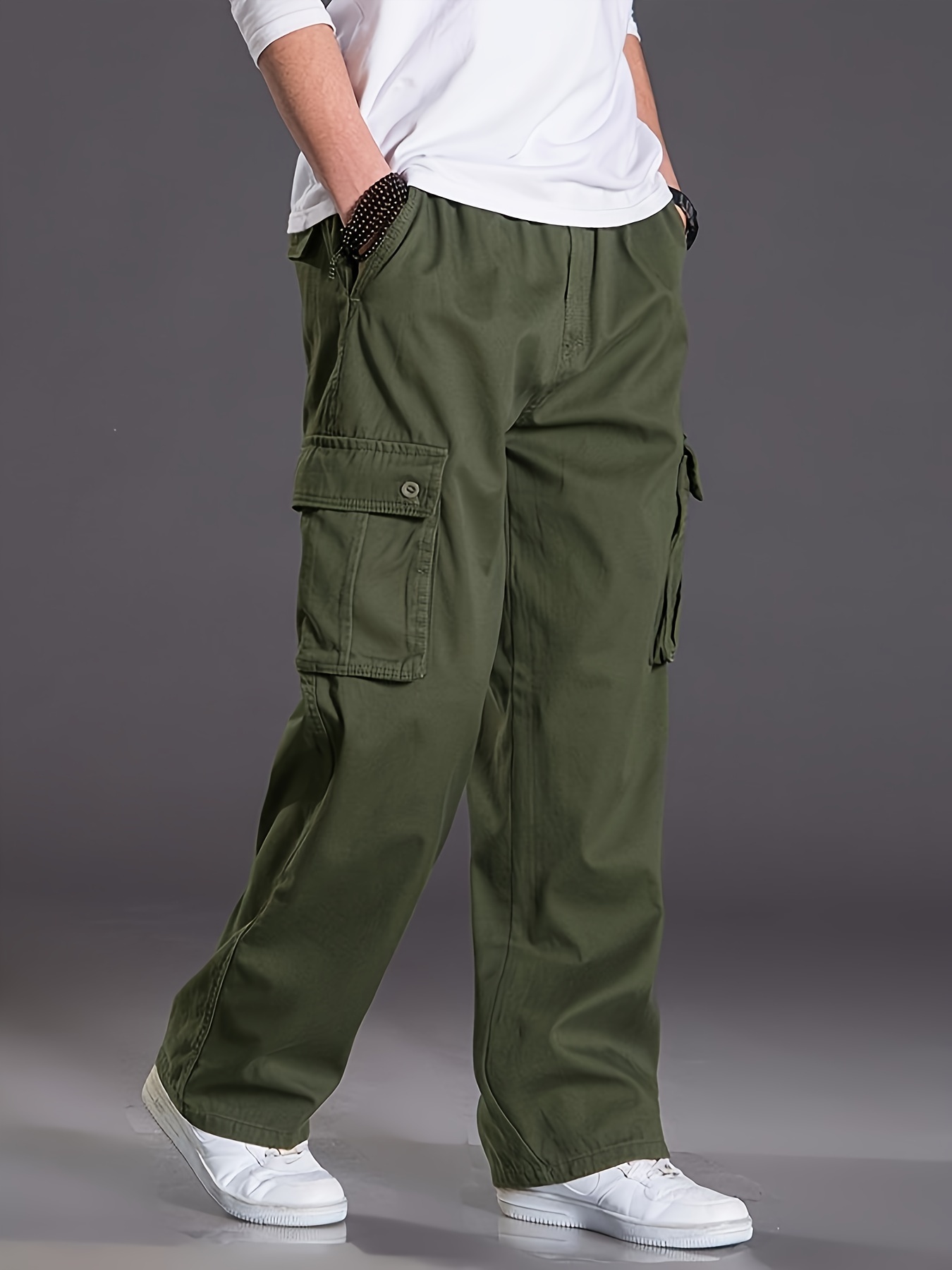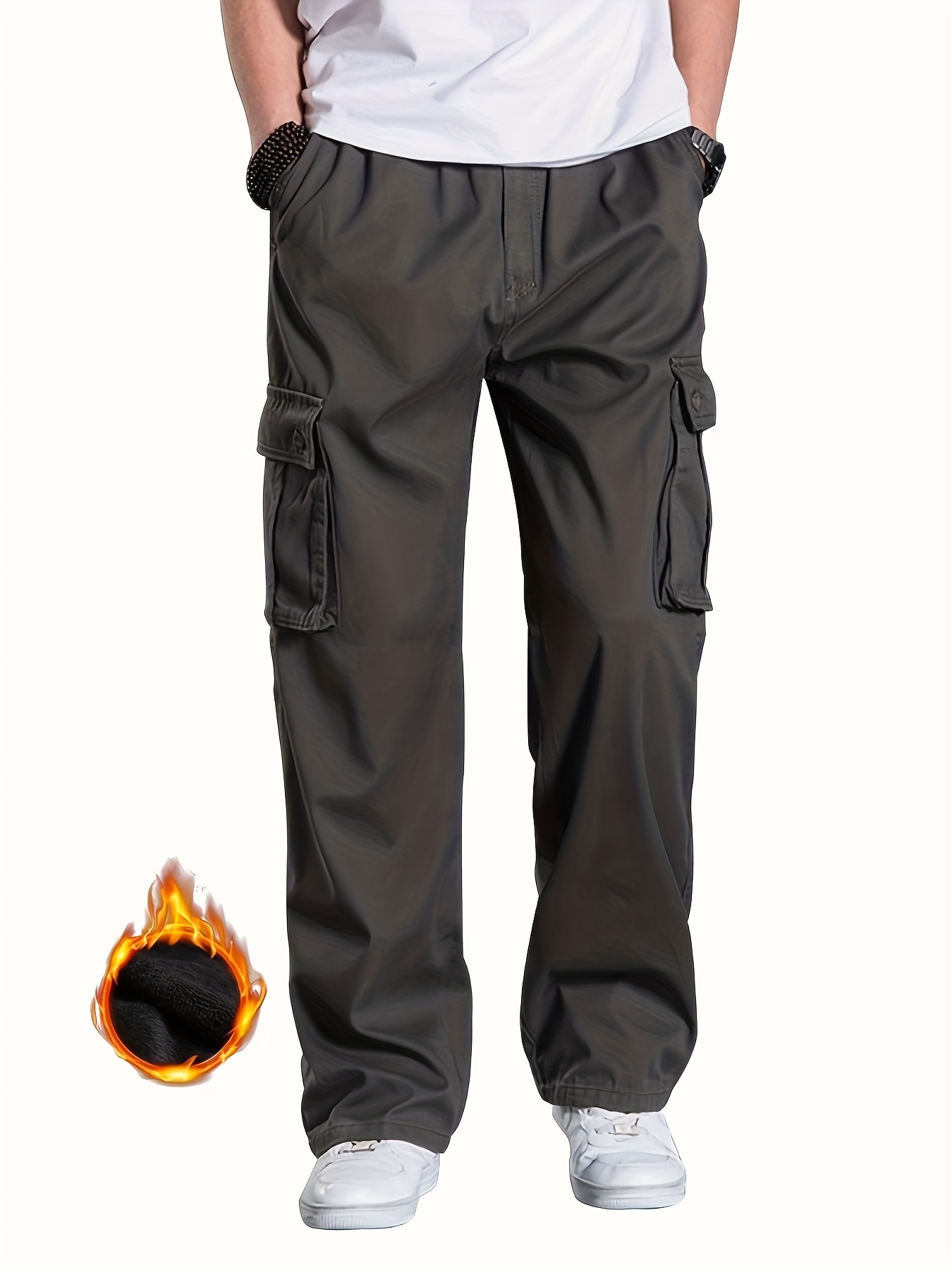Men's Fleece Lined Casual Pants, Elastic Waist Pants Workwear Leisure Fashion Pants Cargo Pants