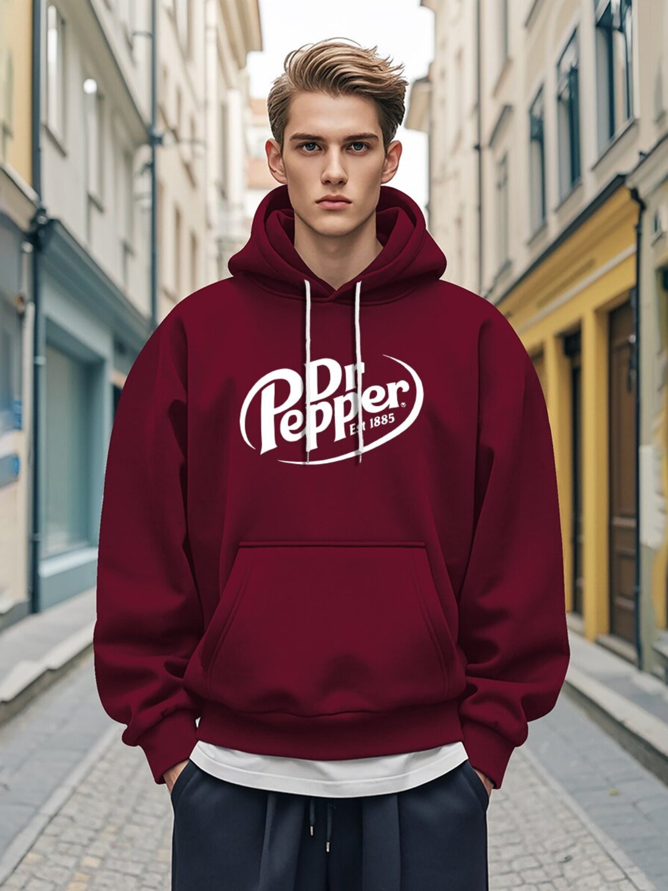 1pc Dr Pepper Print Men'S Casual Hoodie - Cozy Long Sleeve Pullover with Hood, Polyester Fabric, Regular Fit, Stretchy, for Autumn/Winter