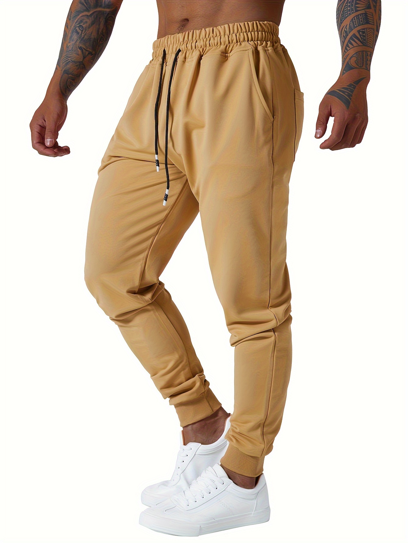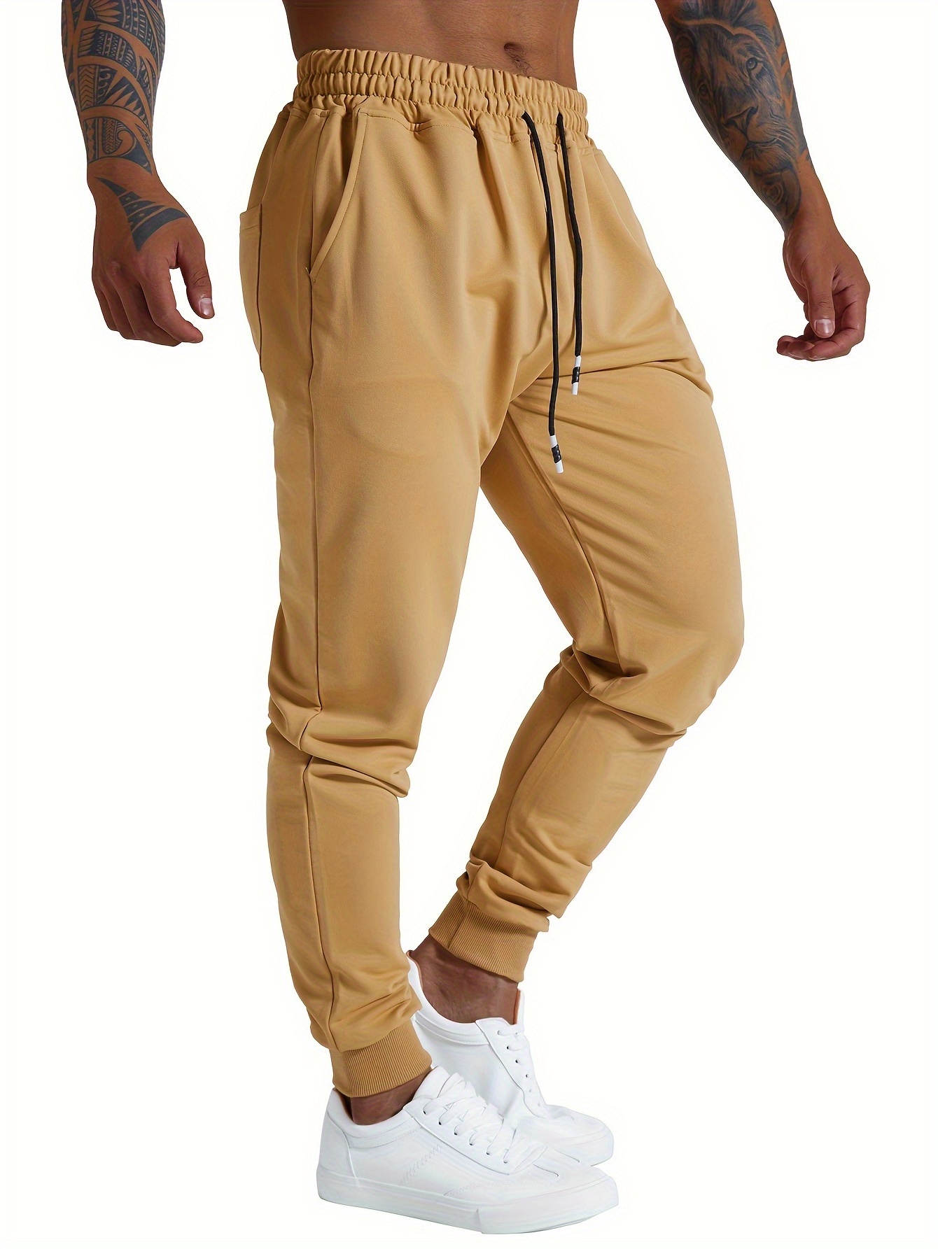 1pc Men'S Casual Sports Joggers - Polyester Knit Athletic Pants with Side Pockets, Elastic Waistband, Solid Color, Regular Fit for Gym & Workout - All Seasons