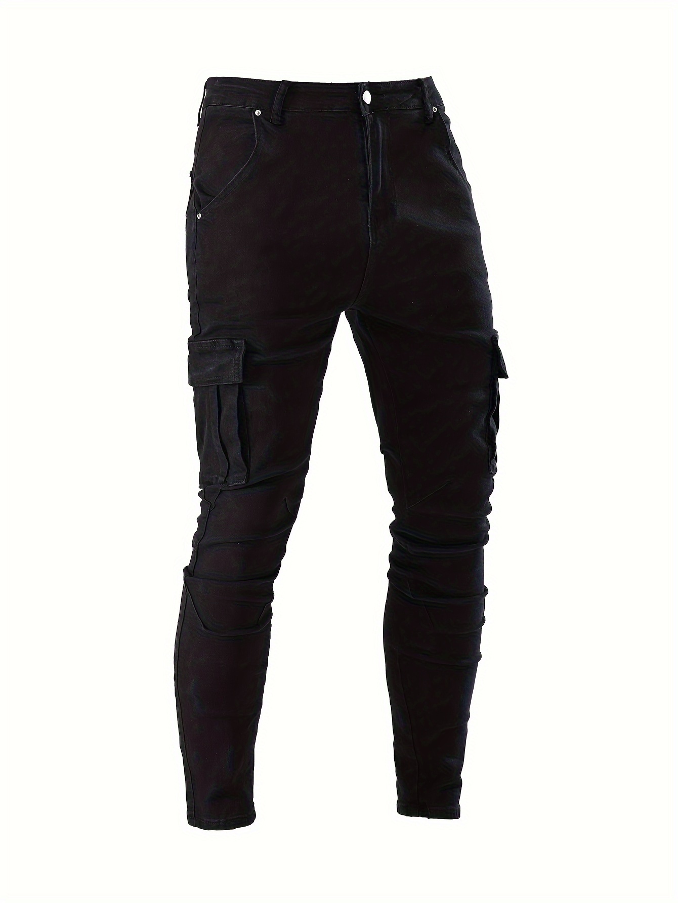Men's Casual Flap Pocket Skinny Jeans, Chic Street Style Medium Stretch Denim Pants