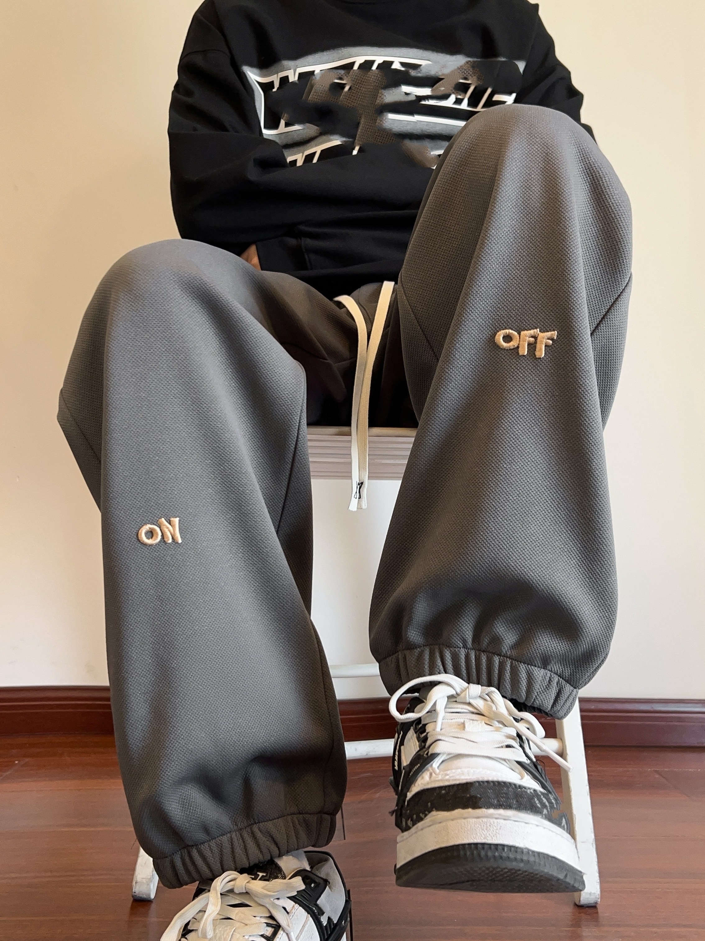 Men's Casual Joggers with Embroidered Design - Comfy Drawstring Sweatpants for Spring & Fall, Versatile Loose Fit