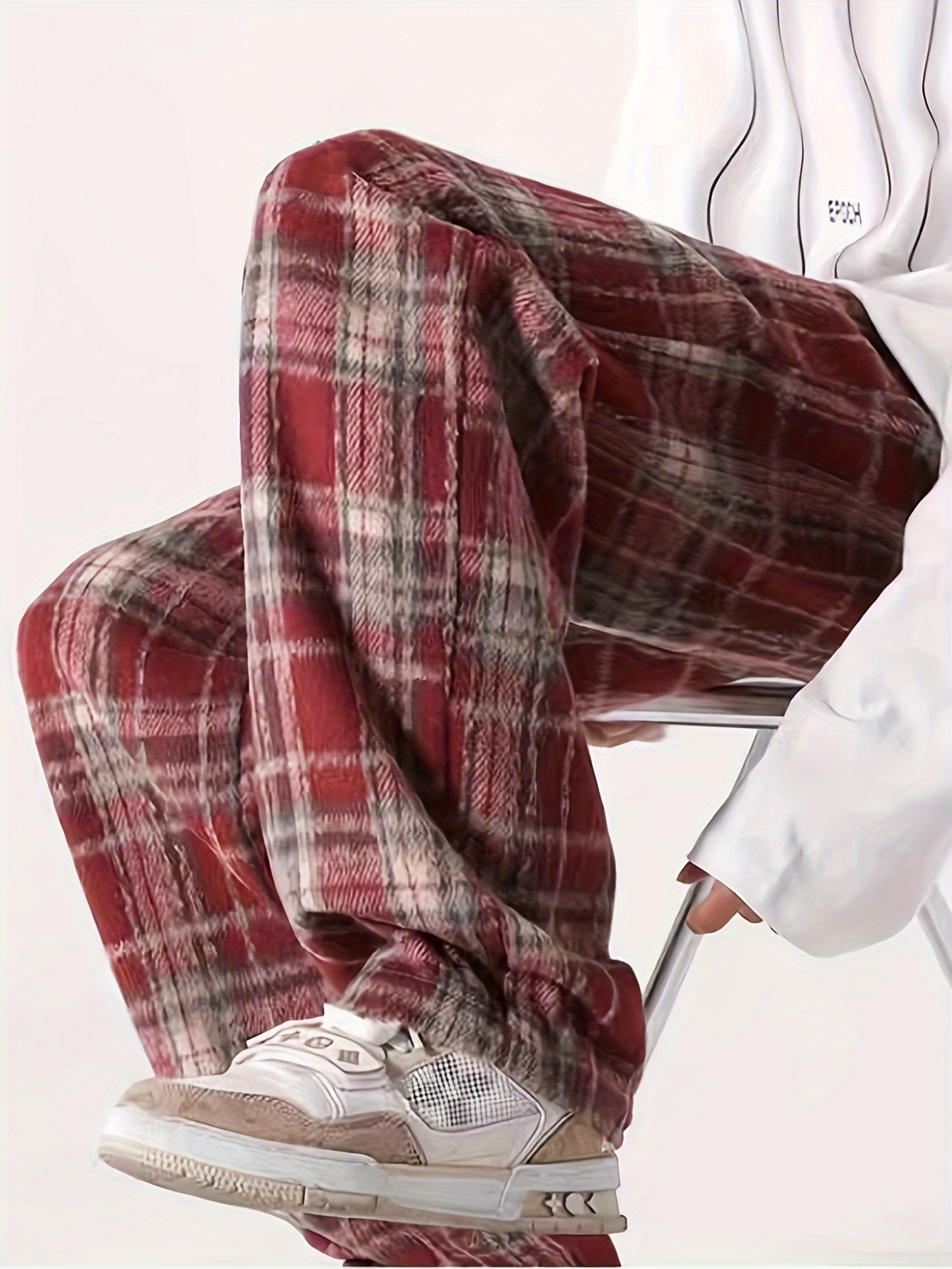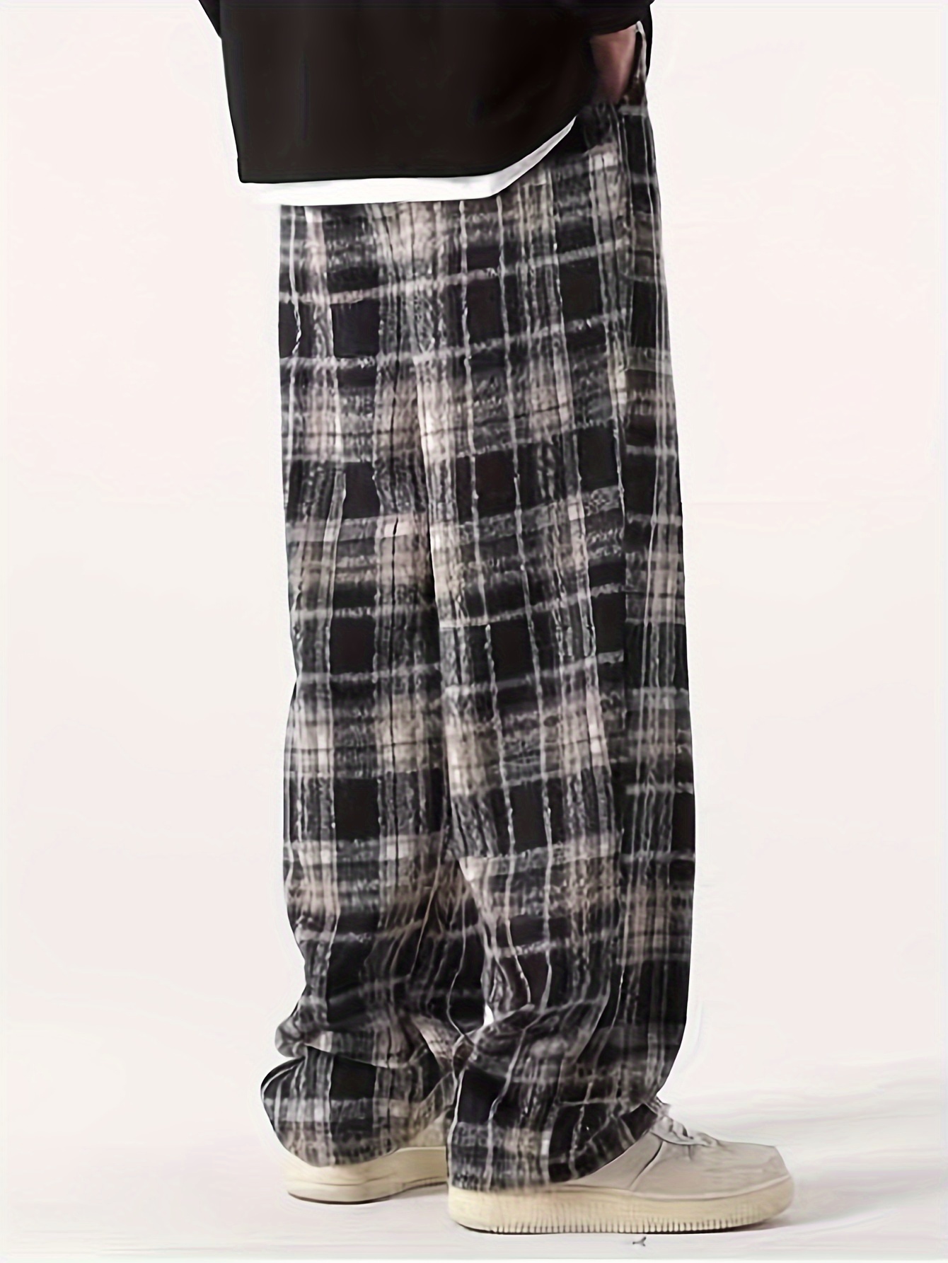 Men's Loose Fit Plaid Trousers, Breathable Comfort, Drawstring & Pockets