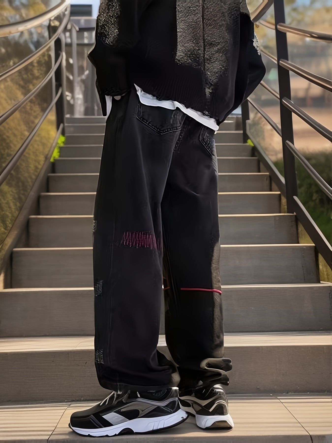 Men's Vintage Denim Jeans, Casual Streetwear Straight Leg Loose Pants For Outdoor Spring Fall