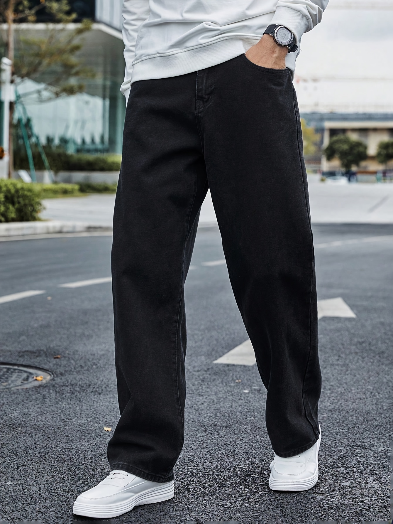 Vintage-Inspired Men's Casual Jeans with Multiple Pockets - Rayon Blend, Loose Fit, Street Style, Machine Washable